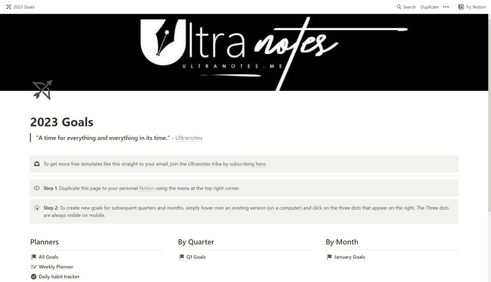 Set and track your 2023 goals with this easy-to-use Notion template.